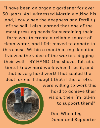 Donations from inspired and generous individuals have been the bedrock of all of TYoFU’s success. Everything described – from building a well, to investing in a biodigester and solar power, to employing young people, to cultivating healthy food – is only possible because of the donations of many generous people.
